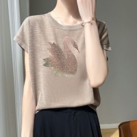 【新品上市】涼爽竹節棉針織短袖 重工天鵝燙鑽 冰絲圓領半袖 時尚內搭打底衫 潮流洋氣