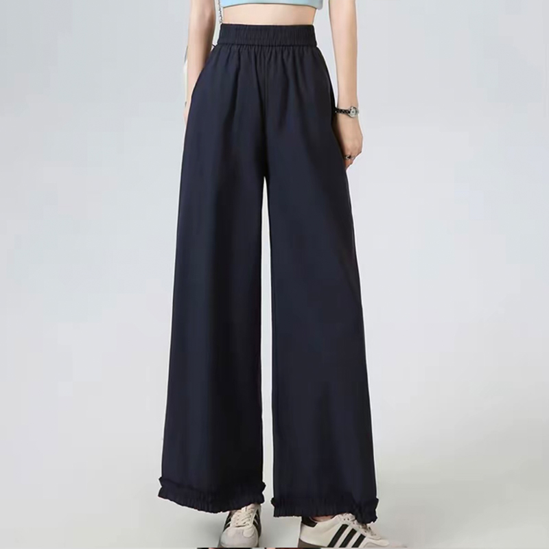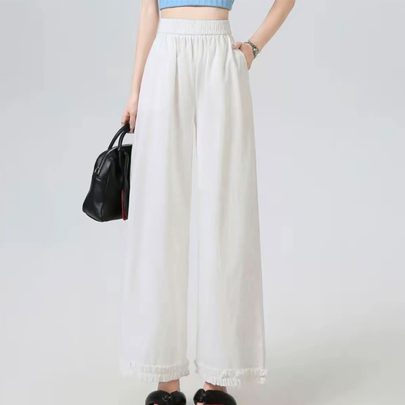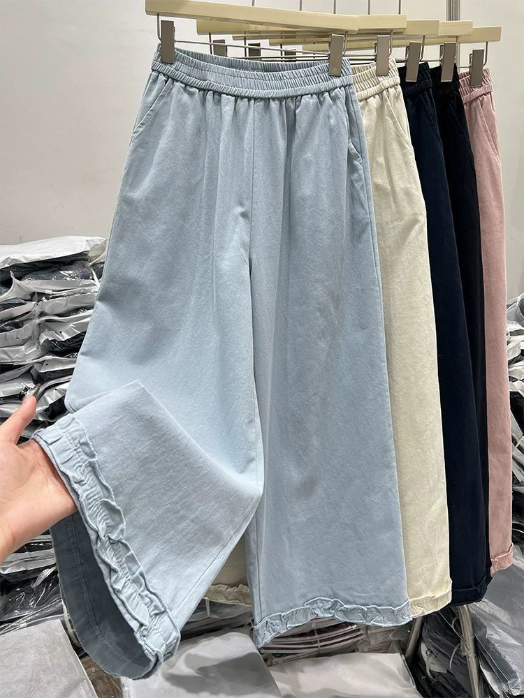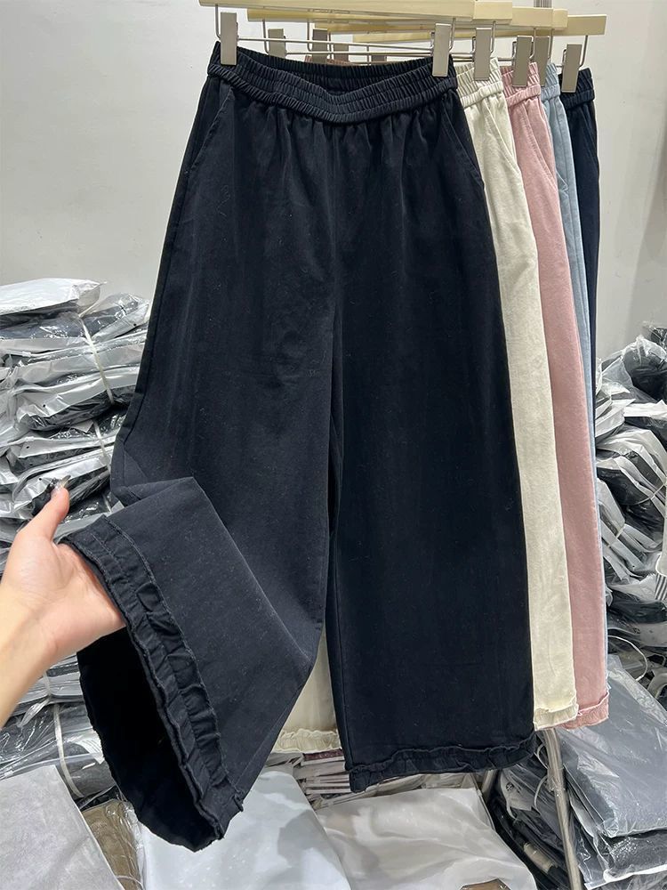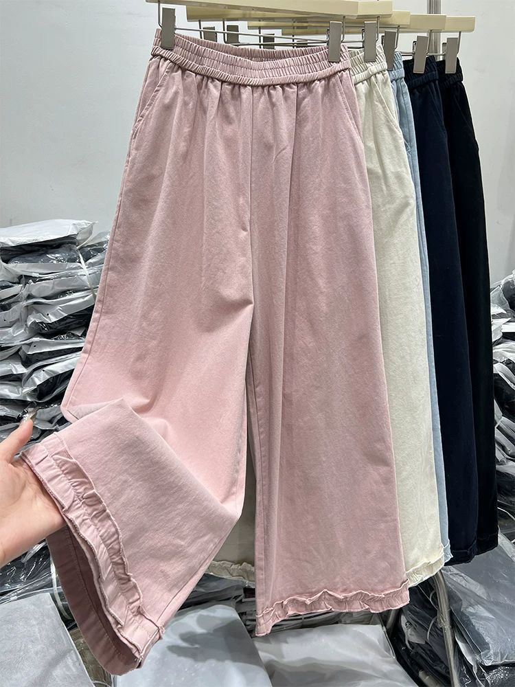 蕾絲中空紗闊腿褲女夏季款韓版鬆緊腰寬鬆垂感休閒直筒九分褲