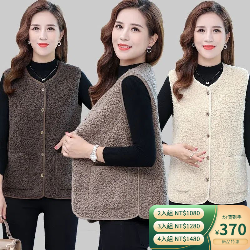 韓版女士羊羔絨馬甲 羊絨毛質細膩柔軟,親膚保暖舒適百搭,給人一種清新脫俗的感覺!