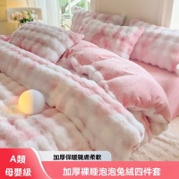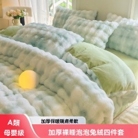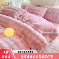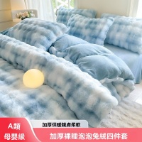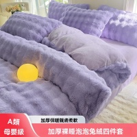 可水洗/機洗 解放雙手 【兔毛絨四件套】雙面加絨 雙人床1.5m兔毛絨床單四件套 冬季加厚牛奶絨枕套/床單/被套
